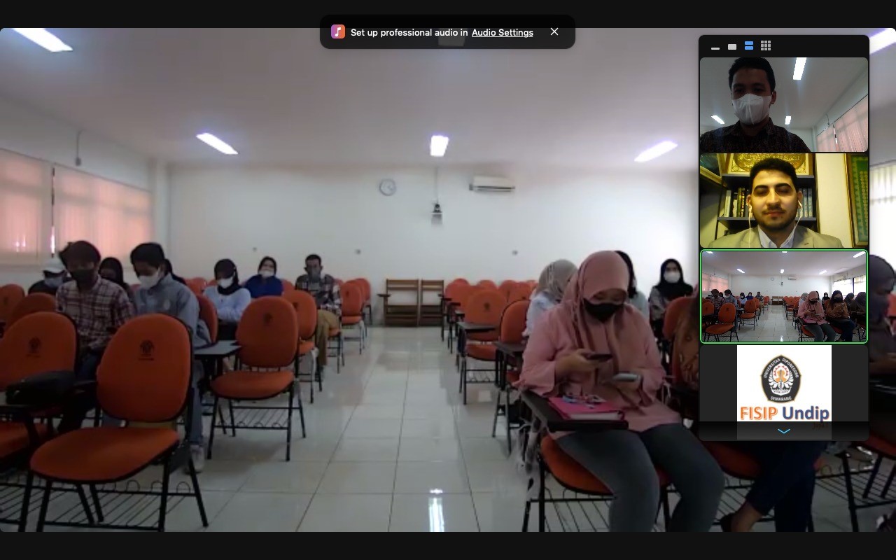 This public lecture began with an opening speech by the Vice Dean I of FISIP Undip, Dr. Drs. Teguh Yuwono, M.Pol. then continued with the introduction of the lecture by the Middle East Studies supporting Lecturer, Dr. Sos. Drs. Muhammad Adnan, M.A.. This event was moderated by Mr. Muhammad Arief Zuliyan S.IP., LL.M.