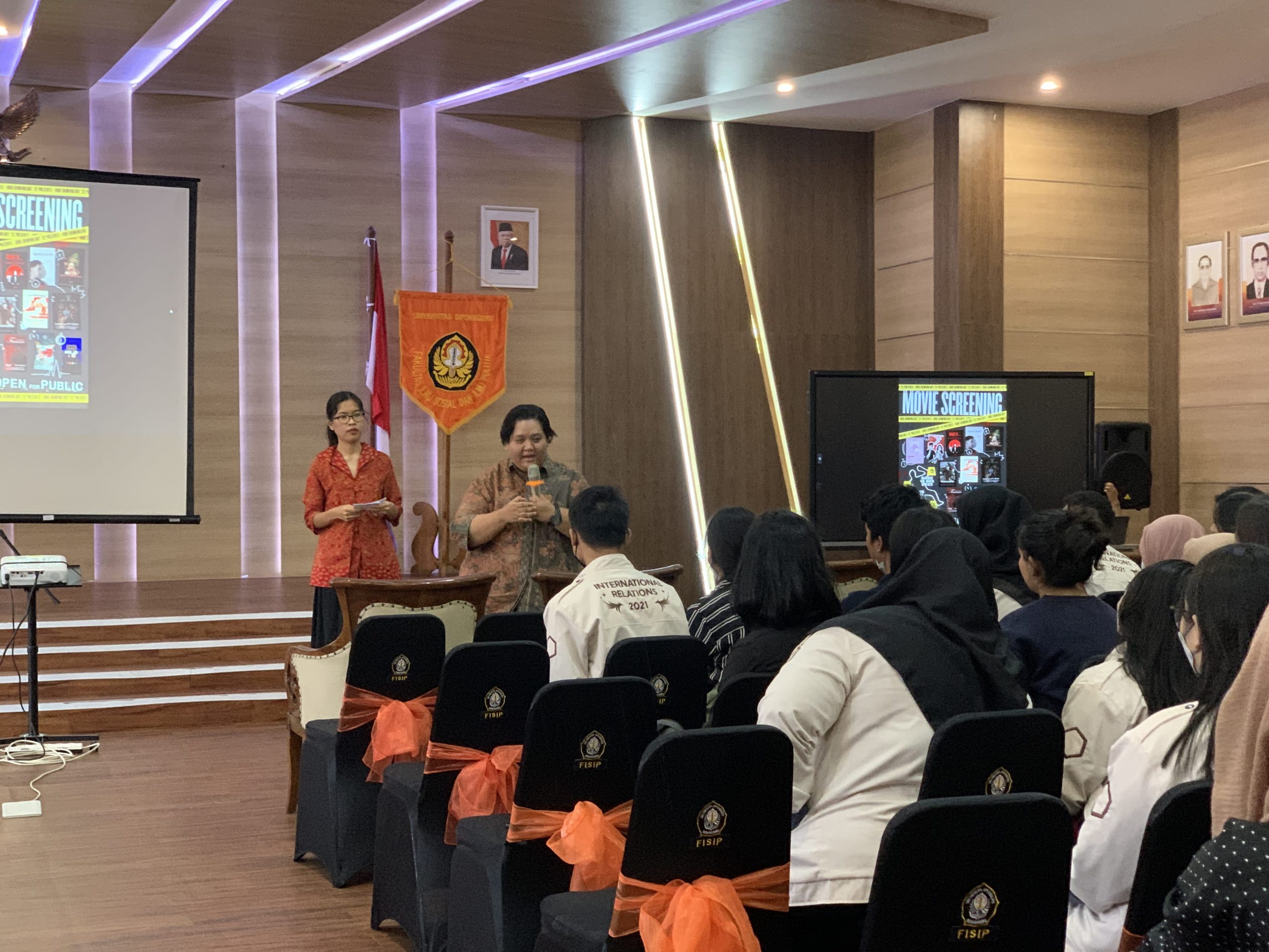 Semarang (14/12) – the Department of International Relations Universitas Diponegoro held a Movie Screening activity as a Final Test assignment for the Criminology course in the form of a short film project by IRUD students class of 2021. The event, which took place on Wednesday, December 14, 2022, from 08:00 to 12:00 GMT+7 at the FISIP Auditorium, was attended by the supporting lecturers, International Relations lecturers and students as well as students from other faculties at Universitas Diponegoro.