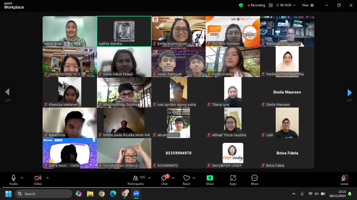 Semarang, November 8, 2024 – The Department of International Relations, Faculty of Social and Political Sciences (FISIP) Diponegoro University, held another guest lecture event open to all Diponegoro University students and the academic community who have an interest in international issues. This guest lecture is entitled “The Role of International Organizations in Indo-Pacific Geopolitics and Geoeconomics: Indonesia’s Strategy in the Region”, was conducted online via Zoom on Friday, November 8, 2024, starting at 1:00 PM (WIB) and continuing until completion.